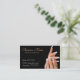 À moda e lustroso. Dianteiro e traseiro inteiramente customizáveis. Fundo preto com imagem do modelo da mão que tem as unhas acrílicas. Texto customizável de harmonização. Para trás do cartão caracteriza o mesmo modelo da mão com propaganda customizável e vale.