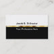 cartões de visitas profissionais com design preto e branco, potente mas simples, que inclui uma linha de divisor de metal ouro simulada impressa na parte frontal e um layout de texto personalizado. Melhores cartões de visitas para qualquer profissão como advogado, contador ou banqueiro.