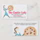 Menina retro do biscoito do estilo que veste um vestido e que leva um biscoito gigante dos pedaços de chocolate neste cartão de visita para seu negócio home do cozimento ou da padaria.