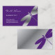 Cartões de visitas roxos & de prata da libélula