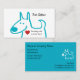 Cartões de visitas bonitas de animais de estimação com design divertido colorido que inclui um cão fofo, forma de coração vermelha e layout de texto que você pode personalizar online. Concebido para um babá, serviço de cuidados para animais de companhia, veterinário ou cuidados de animais de companhia.