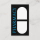 Cartões de visitas modernos, mas simples, de farmácia médica e farmacêutica criados com um grande gráfico de pílulas e tipografia ousada na frente com os seus contatos organizados e editáveis no lado do sacudir.