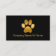 Simples cartões de visitas de serviço para animais de companhia, incluindo uma silhueta de pata de cão ou de estimação com aparência de ouro elegante no primeiro lado, e informações da sua empresa no segundo lado, incluindo impressão lateral. Personalize a cor de fundo, o texto e o layout de texto. Concebidos para um serviço de cuidados de animais de estimação clássico, veterinário ou serviço de cadelas.