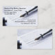 Cartões de visitas modernos para um público notário criado em um design inteligente com um gráfico de documento de assinatura e caneta de rico em segundo plano e estilo editável que você pode personalizar on-line.