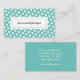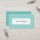 Bolinhas de Teal Moderno estilo de Diversão de Cartões de visitas de Chic com a popular cor de lacre em ambos os lados do cartão. Frente de cartão com bolinhas brancas bonitas padronizadas para fundo e nome comercial em tipografia negra. Traseira da placa com modelo fácil disponível para preencher suas informações.