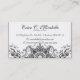 COR PALETTE: branco a preto na frente e preto a branco no lado oposto. COLLECTION: Estas são placas de chamada de negócios que são facilmente personalizadas usando os campos modelo com suas informações pessoais. Esta é uma coleção de negócios feminina verdadeiramente elegante e sofisticada, com um talento vintage formal e moderno! Mostradas aqui em branco a preto, as cartas têm uma aparência dramática elegante. Para um toque de acabamento bonito, selecione os itens de papelaria correspondentes do mesmo design. Esta é a trabalho de arte desenhada por Audrey Jeanne Roberts criada de antigos elementos decorativos da impressora estilo Barroco gravados, que foram criados em uma cor damasco. Os padrões gravados têm folhas e elementos florais, além de folhas de acanthus em forma de círculo semirestrelado. A design tem uma era vitoriana ou a Elegância Francesa sente-se nela com uma reviravolta contemporânea. Se há um produto que você gostaria de ter criado que não nos é oferecido apenas mensagem!