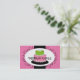 Design de cartões de visitas da padaria do bolo de casamento por Elke Clarke ©2012. Bolo de casamento floral do rosa e do verde em um fundo floral cor-de-rosa com acentos pretos. Mais projeta disponível em strictlybusinesscards.blogspot.com. Customizável com sua cor da informação e do fundo.