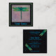 Elegante, lunático, e olho que trava, este cartão é memorável. Para fazer Sure uma afirmação pessoal com sua libélula do verde da aguarela, contra um fundo pinkish, quadro com um quadro verde na parte dianteira. A parte traseira tem a rotulação azul brilhante, de que estala contra o preto do cartão, acentuado com libélulas.