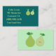 Esta trabalho de arte na moda apresenta um gráfico bonito e moderno de pera verde, com uma visão completa e dividida que revela as sementes! Estes cartões de visitas originais de ilustração de arte vetorial são perfeitos para qualquer um com uma nova visão sobre a vida e um amor por designs bonitos e simples!