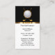 Modelo de cartão de visita de design de treino de golfe num formato vertical legal com a imagem de um gráfico de bola de golfe de tom dourado com clubes de golfe e sala para adicionar os seus contatos e informações sobre as aulas de golfe disponíveis. Criado para um Golf Pro, treinador de Golf, ou instrutor.