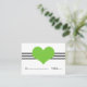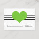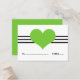 Cartão de Casamento Simples e encantador de Mod Heart Place, com uma banda tripla de listras e um coração querido em verde chartreuse. Este doce e minimalista cartão de escolta é perfeito para um casamento moderno e elegante. O espaço é fornecido nesta design para escrever nos nomes e nos números de tabela onde os seus convidados estarão sentados. Clique em "Personalizar" para encontrar opções adicionais de personalização.