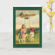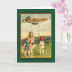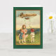 Ilustração irlandesa bonito da arte das crianças em um campo, com um dirigible (zepelim? dirigível?) aéreo, dispersando trevos através da paisagem. Envie cumprimentos do dia de St Patrick aos amigos e à família, ou adicione o texto para criar o cartão de aniversário do dia de um St Patrick pessoal ou o outro cumprimento.