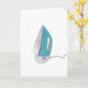 Um artigo do agregado familiar que a maioria de nós tenham é um ferro. Este design é um ferro elétrico que esteja ascendente ereto e pronto para ser usado. O ferro é azul na cor com a base tradicional do cinza do metal. Este design do ferro elétrico olha grande nestes cartões