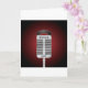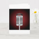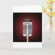 Este design é um microfone do canto. O microfone está em um suporte pronto para que alguém cante nele. Este design do microfone do canto olha grande no este cartões