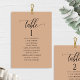 Ajude seus hóspedes a encontrar sua mesa com este elegante cartão de assentos do terracotta moderno com nomes de hóspedes. Cartões duplos para que os hóspedes possam procurar os dois, frente ou verso pelos seus nomes. Espaço livre ao redor, dando-lhe a liberdade de usar clipes ou furos de perfuração para monitores suspensos, ou usar o suporte/quadro da mesa. Fundo Terracotta e texto negro. Detalhes da caligrafia escrita à mão. Várias opções de cores. Ter todos os números de tabela na mesma cor ou cores misturadas de acordo com o tema de cor do evento. Parte de nossa coleção "Sinais de eventos e produtos de tons terrestres" com uma variedade de produtos de coordenação disponíveis, incluindo cartões de números de tabela e menus.