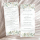 Elevem o vosso casamento com as nossas elegantes cartas de casamento clássicas, inspiradas na natureza botânica. Apresentando um verde-luxuoso e folhas de eucalipto pareadas com flores brancas de rosa, estas cartas adicionam um toque de beleza eterno à sua celebração. Perfeito para casamentos com temas da natureza, rústicos e jardins, estas cartas de programa complementam lindamente o seu tema de casamento.