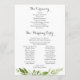 Nossos programas de casamento de folha verde rústica têm uma redação que é completamente personalizável. Use a ferramenta "Personalizar esta modelo" de Zazzle para inserir as informações da sua cerimônia de casamento. Se você precisar alterar o posicionamento das caixas de texto, a cor ou o tamanho da fonte, basta clicar no botão "Clique para personalizar mais" para alterar essas coisas. Certifique-se de verificar nossa grande seleção de itens coordenando navegando na coleção Rustic Greenery Wedding!