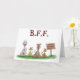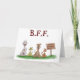 Cartão da ilustração dos desenhos animados com imagem de dois cães e de dois gatos que olham a suspensão feliz para fora como melhores amigos com o texto popular BFF (melhores amigos para sempre) sobre a parte superior da imagem dos desenhos animados. Adicione sua própria mensagem a seu BFF no interior.