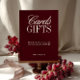 Bem-vindos aos seus convidados com este elegante cartão de burgundy e sinal de presentes, perfeito para os guiar à sua mesa designada. Projetado com fundo enfurecido de vinho e uma refinada mistura de serifa e tipografia de roteiro, esse sinal combina sofisticação com praticidade. Um detalhe ponderado para casamentos formais, recepções de vinhedos, comemorações de outono ou cerimônias noturnas, adiciona estilo e função à sua decoração. Totalmente personalizável — personalize com seus nomes, data de casamento ou texto personalizado para se adequar ao seu evento. Coordena-se perfeitamente com a suíte de papelaria de casamento "Sabrina" de cheio para uma aparência coesa e eterno.