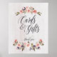 O fundo branco puro da madeira rustica, o belo texto caligráfico e as impressionantes florais de aquarelas (pelo artista extremamente talentoso, SmallHouseBigPony) dão um belo sinal.
