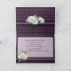 As rosas brancas elegantes no cheio floresceram no profundo cartão de aniversário de casamento roxo com ano personalizado. Personalize o ano e o verso dentro em modelo fornecido. Fotografia original e design por Anura Design Studio 2010.