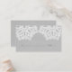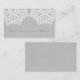 Cartões simples e sofisticados de local de casamento de renda Elegante, com um local branco, com um motivo suave em um fundo de papel de folha de cinza clara. Estes cartões clássicos e na moda são perfeitos para um casamento rústico. O espaço é dado nesses cartões de escolta e na moda para escrever nos nomes e nos números de mesas onde cada um de seus convidados estará sentado na sua recepção. Clique no botão "Personalizar a TI" para encontrar opções adicionais de personalização.
