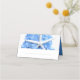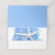 Cartões de lugar dobrados, de pé, com flores azuis de hydrangea e design de estrelas-vivas. Cartões brancos com floração realística azul clara e imagem de estrela branca do mar fazem parte da linha de design do Jardim das Seicheles. Um painel branco com linha pontilhada para o nome do convidado ao longo da parte inferior é fácil de personalizar removendo a linha, se desejar. Podem também ser utilizados como cartões de escolta, incluindo um número de tabela. Cartões de mesa de recepção vêm em conjuntos de 25 para que os nomes individuais não possam ser impressos com antecedência e precisem ser manuscritos após a compra. A parte traseira e o dentro da placa são azuis.