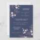 Convites feitos sob encomenda do casamento da foto no design floral moderno escuro elegante dos azuis marinhos, do rosa do pêssego, e o branco. Inteiramente customizável com seus detalhes e foto do casamento. Igualmente em muitos produtos de harmonização do casamento, contacte-nos para pedir uma mudança da cor.
