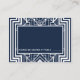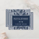Essas placas de lugar possuem uma intrincada estrutura geométrica, padrões geométricos, uma paleta de cores azul e branca marinho, e outros detalhes estilísticos inspirados em Art Deco e nos vinte e poucos anos. Você pode personalizar os campos de texto de exemplo de acordo com o seu gosto.
