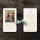 Os nossos pensamentos estão convosco neste momento muito triste e queremos fazer da lembrança do seu amado um processo muito fácil. É por isso que nós projetamos esses cartões laminados memoriais para torná-los rapidamente personalizados com sua própria foto e texto personalizados. O design simples permite que você enquadre sua foto e exiba seu texto sem ofuscar nenhum elemento. Estas cartas podem ser dadas à família e aos amigos e serão ajustado carteiras para serem transportadas com eles como um belo guardião. Por favor, envie-nos uma mensagem se quiser que alguns elementos do design sejam alterados e estaremos aqui para ajudar.
