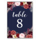 Cartões Numerosos de Mesa de Casamento de Peônias de Marsala - design apresenta um fundo azul marinho com várias peônias, rosas e outros elementos florais em tons de Marsala, burgundy, rosa azul, cinzas e outros. Consulte a coleção correspondente nesta página para concluir a procura do evento.