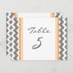 Laranja tangerina elegante e moderna, cinza de carvão negro e cartões de número de mesas brancas com padrão retrô e chevron zigzags divertido. Personalize estes cartões para criar cartões de número de tabela personalizados para cada mesa no seu casamento. Padrão disponível em uma grande variedade de produtos de casamento correspondentes.