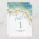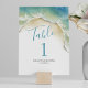 Projetada para coordenar com a suite de estórias de casamento do Do Tell A Belle, esta tabela temática da praia apresenta uma réplica das minhas ondas azuis originais do oceano com o número da sua mesa, nomes e data de casamento em azul-turquesa. Perfeito para recepções de casamento de verão, litoral e náuticas, jantadas de ensaio e chás de panela. Para ver mais designs de Victoria Grigaliunas, visite www.zazzle.com/dotellabelle Entre em contato comigo se precisar de mais itens.