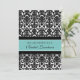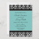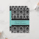 Convites nupciais do almoço no azul de turquesa elegante, cor damasco floral clássica preto e branco, elegante e feminino, customizável com seus detalhes do chá. Também disponível no obrigado você cartões e convites para o partido nupcial.