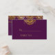 Este design elegante, chamado Casamento Índio Puro e Dourado Brilhante, tem um fundo roxo. Na frente há uma design de borda com estilo dourado com Lord Genesha no centro para afastar quaisquer obstáculos. Na parte inferior está o nome do casal em ouro. O fundo tem um fundo roxo com o seu texto em ouro. Este conjunto tem convites, cartões salve a data, cartões de resposta, cartas de agradecimento, cartões de mesa, rótulos de vinho, programas de casamento, e muito mais peças de papelaria de casamento, favores e presentes para coordenar. Todos os elementos são impressos nos nossos produtos de alta qualidade, não incluem ouro real, joias, gravuras ou outros elementos têxteis. Todos os designs são copyright Noteable Express, Inc. Todos os direitos reservados.