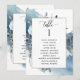Ajude seus convidados a encontrar sua mesa com este elegante cartão azul de aquarela e cartões de planos florais com nomes de convidados. Cartões duplos para que os hóspedes possam procurar os dois, frente ou verso pelos seus nomes. Espaço livre ao redor, dando-lhe a liberdade de usar clipes ou furos de perfuração para monitores suspensos, ou usar o suporte/quadro da mesa. Detalhes da caligrafia escrita à mão. Preencha as caixas de texto de modelo com a tabela número 1 e os nomes de convidado correspondentes, adicione ao seu carrinho de compro e volte a repetir o processo com a tabela número 2. Continue repetindo até que todos os cartões de mesa sentados estejam no seu carrinho de compro e, em seguida, continue com o pagamento. Parte de nossa coleção "Casamento e eventos de montanhas russas azuis" com uma variedade de produtos de coordenação disponíveis, incluindo cartões e menus de números de tabela. Visite a coleção inteira em: https://www.zazzle.com/collections/rustic_blue_mountains_wedding_and_event_collection-119893780903977429