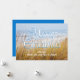 Cartões planos de um lado só de Feliz Natal na Costa. Personalize sua escolha de saudação sobre uma imagem de fundo de dunas de oceano com grama alta ondulante. Este cartão de Natal exclusivo com tema costeiro tem texto sombreado que é branco com azul. A assinatura é em letra cursiva branca perto da parte inferior. O verso do cartão é azul sólido.