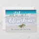 Cartões planos de "Feliz Natal" da praia com texto personalizado e desenho de estrela-do-mar. Letras grandes para a saudação em fonte sombreada que podem ser facilmente alteradas para a sua escolha de saudação de Natal. Adicione uma assinatura impressa na parte inferior. O verso também é uma cena de praia. Este cartão seria adequado para uma saudação de Natal empresarial / corporativa para clientes e clientes.