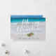 Cartões planos de "Feliz Natal" da praia com texto personalizado e desenho de estrela-do-mar. A letra grande para o cumprimento é uma fonte sombreada e pode ser facilmente alterada para a sua escolha de cumprimento de Natal. Adicione uma assinatura impressa na parte inferior. O verso também é uma cena de praia. Este cartão seria adequado para uma saudação de Natal de negócios / corporativa para clientes e clientes.