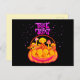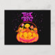 É design de festas de halloween celebrando o próximo Halloween. Este kawaii desenhado à mão e uma ilustração divertida apresenta um halloween feliz, cogumelos de abóbora e truques ou travessuras.