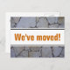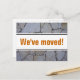 Imagem de cartões postais animados com fundo de parede de pedra. Texto de mudança personalizado; Nós nos mudamos! Adicione seu novo endereço no verso. Cartões modernos de casa nova para casa e negócios. Fotografia de padrão de paisagismo. Ideia de design de cartão mais barato.