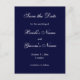 Estes cartões postais clássicos de salve a data apresentam texto branco elegante em um fundo azul escuro. Mais cores estão disponíveis na loja.