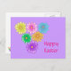Mães coloridas com centros amarelos, com Felz pascoa em vermelho, sobre fundo de lavanda, são impressas em cartões postais personalizados. O texto pode ser facilmente personalizado no formulário modelo. Obrigado por comprar em CherylsArt no Zazzle.