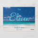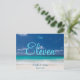 Cartões postais da mesa de casamento da praia azul com texto personalizável