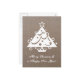 Cartões postais da árvore de Natal sobrepostos com mensagens personalizadas como Feliz Natal ou Feliz Natal! Sessões personalizáveis saudando e desejando a mensagem no verso. Altere a quantidade para obter o preço mais barato por cartão. Design com árvore de Natal decorada. Tipografia elegante russa.