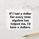 Se eu tivesse um dólar por cada vez que a álgebra me ajudasse, eu não teria um dólar.