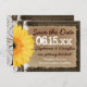 Cartões-postais de "Save the Date" com impressão de madeira de celeiro rústico e renda com margarida Gerber amarela para casamentos country, com fonte manuscrita fofa e números grandes para a data do casamento. Lê-se "Save the Date. [Data] Noiva e noivo estão se casando. [local do casamento] Segue o convite formal". Ambos os lados do cartão-postal têm um fundo de madeira escura desgastada com renda impressa e laço de corda impresso e um design de papel desgastado. A frente tem a margarida gerbera amarela ao lado. Basta adicionar os detalhes do seu casamento ao modelo. O verso tem seu endereço de retorno e um local para endereçar o cartão-postal aos seus convidados. São ótimos para casamentos rústicos e casamentos em celeiros.
