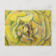 Pintura de uma vibrante rosa amarela em close-up enquanto as pétalas giram para fora. Azuis, roxos e verdes frios fornecem um contraste vibrante às sombras e acentuam o movimento do redemoinho amarelo. Personalize o cartão postal de arte de rosa amarela com seu próprio texto e imagens usando as opções "Personalize" para criar cartões postais especiais de rosa amarela!