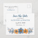 Esses cartões-postais personalizados são perfeitos para cartões de "save the date" de casamento. Eles apresentam uma ilustração floral em estilo aquarela em tons suaves e discretos de azul e laranja, tornando-os perfeitos para casamentos e eventos especiais de outono. Use os campos do modelo para personalizar facilmente esses cartões de resposta com suas informações. Precisa incluir mais informações? Selecione a opção PERSONALIZAR para adicionar texto adicional a esses cartões-postais.