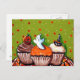 Divertido, cupcakes de Halloween deliciosos contra um fundo verde limão.